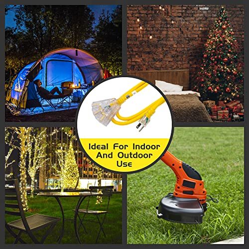 15 Ft Lighted Outdoor Extension Cord With 3 Power Outlets 12 3 Sjtw Heavy Ebay